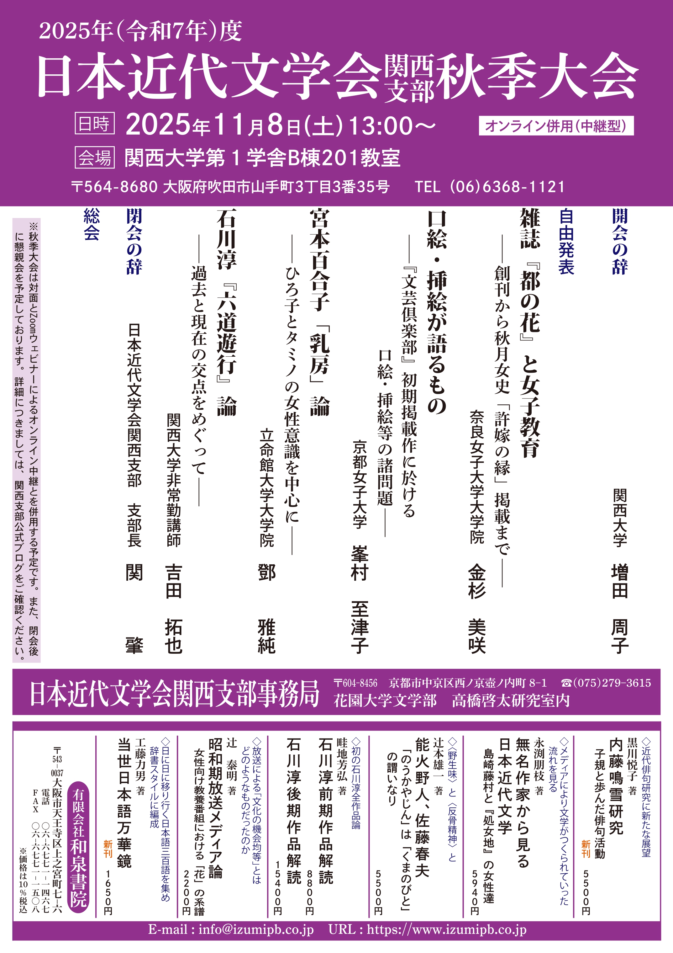 2025年度日本近代文学会関西支部秋季大会における